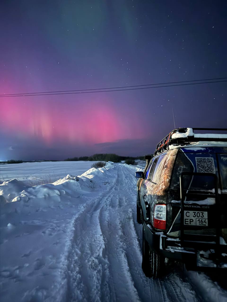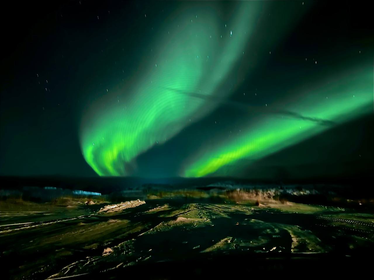 Вечером возвращаемся в Мурманск, по дороги ловим сияние.